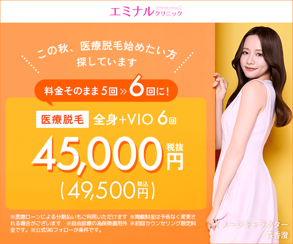 VIO込みの全身脱毛が6回49,500円と圧倒的にリーズナブル。分割払いにすれば月々1,000円〜と学生さんでも気軽に始めやすい!